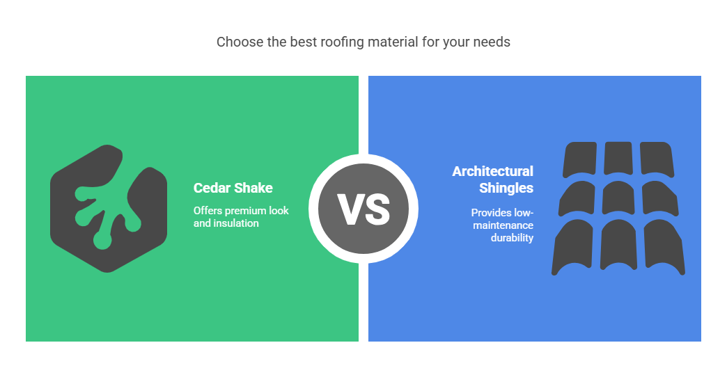 Cedar costs more. A lot more. But it also insulates better, lasts longer than asphalt (if maintained), and gives your house a unique, premium look. That said, if you just want something to put on your roof and forget about, cedar isn’t it. Go with architectural shingles. They’ll last you 20-25 years with much less effort.